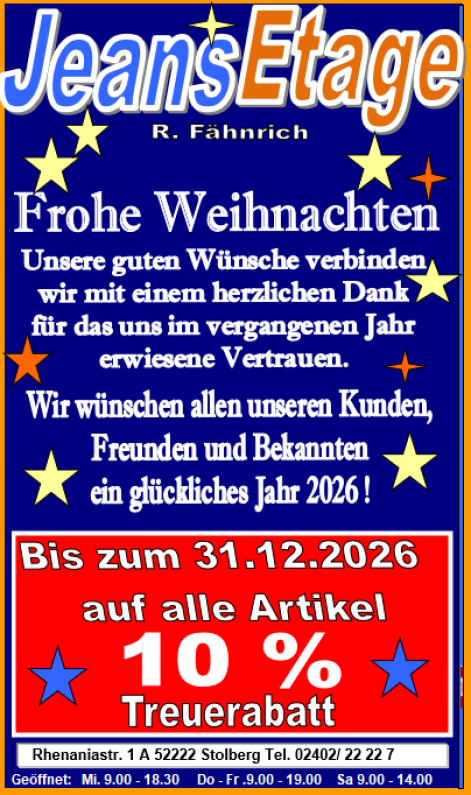 Herzlich Willkommen bei Jeans Etage Fähnrich in Stolberg Atsch seit 1977