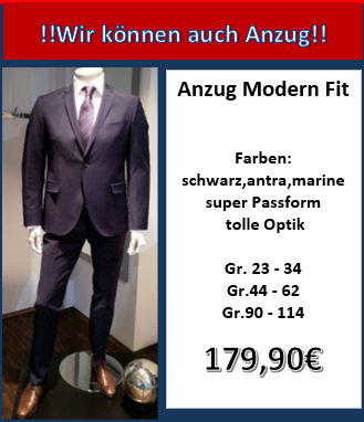 In unserem Geschäft finden Sie nicht nur Jeans mit super Passformen auch Tuchhosen für Damen und Herren. Dabei achten wir besonders auf hohe Qualität der Kleidung, saubere Verarbeitung, schöne Stoffe und Passformen (kurze aber auch hohe Leibhöhe)sowie faire Preise. Das Sortiment wird abgerundet mit schönen Oberteilen wie z.B. Damen Strickpullovern, leichte Shirts, für Herren sportliche Pullover, Sweat-Shirts, mod. Hemden Sakkos und sportliche Damen und Herren Jacken.